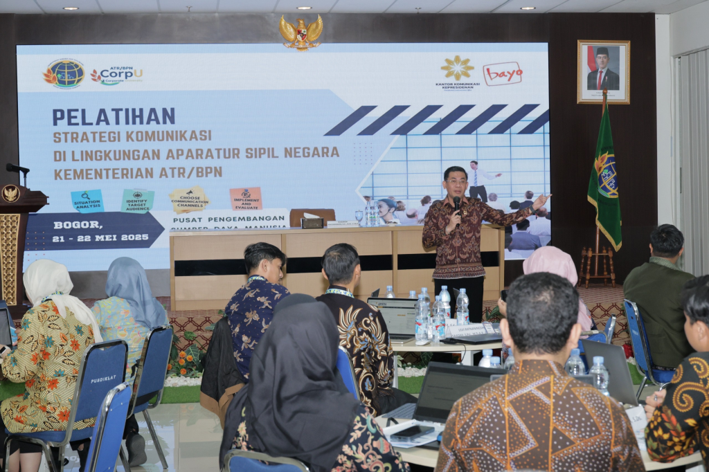 “Perbedaan bahasa, kultur, harus kita terjemahkan di strategi komunikasi. Supaya apa yang ingin kita sampaikan sama dengan yang diterima publik. Supaya dipahami. Kalau paham, bisa melaksanakan dan karena melaksanakan maka bisa memperoleh manfaat. ATR/BPN ini gagah ketika menjalankan tugas dan fungsinya. Begitu banyak program yang layak diceritakan,” ungkap Harison Mocodompis saat menyampaikan materi dalam Pelatihan Strategi Komunikasi di Lingkungan Kementerian ATR/BPN, di BPSDM, Cikeas, Rabu (21/05/2025).